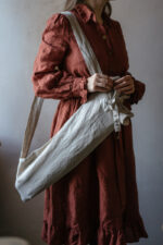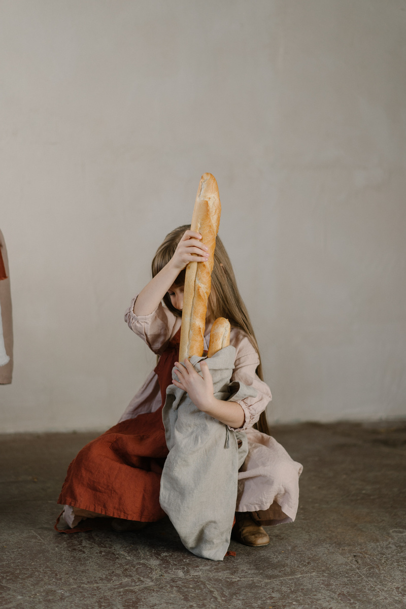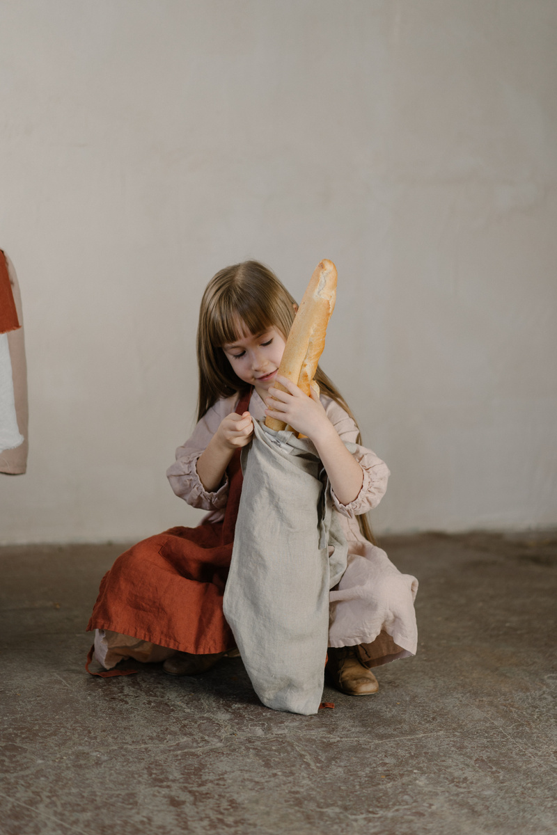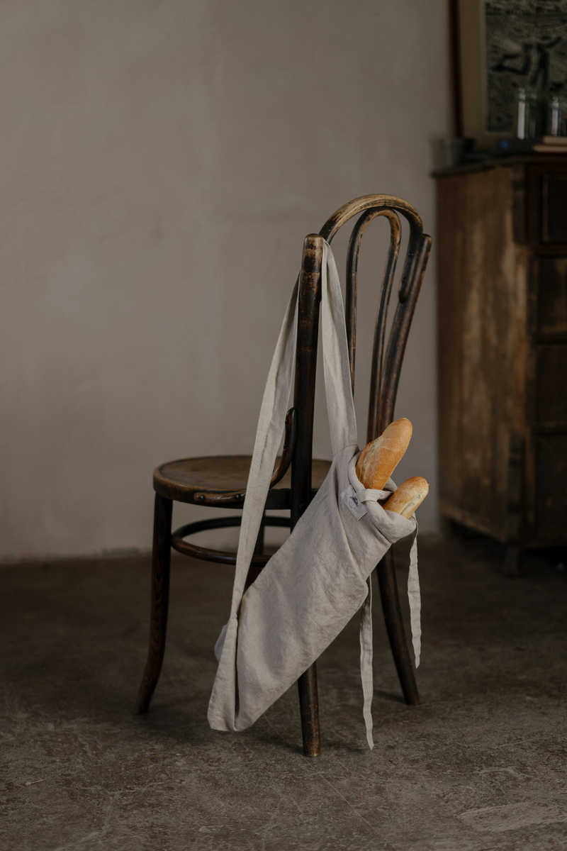 A linen market bag for baguette is designed for carrying longer bread, baguettes, or other items—a stylish option for those who long the idleness of the french countryside.In the pictures: