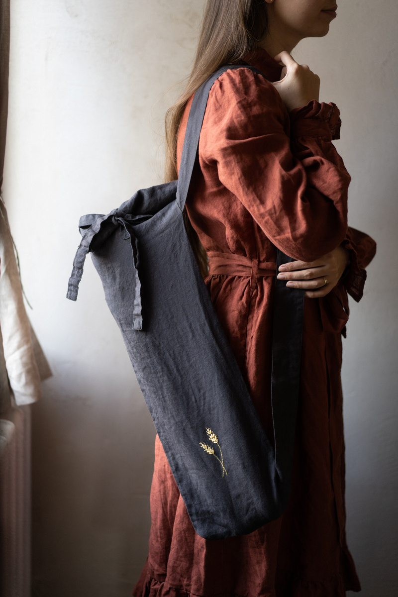 A linen market bag for baguette is designed for carrying longer bread, baguettes, or other items—a stylish option for those who long the idleness of the french countryside.In the pictures: