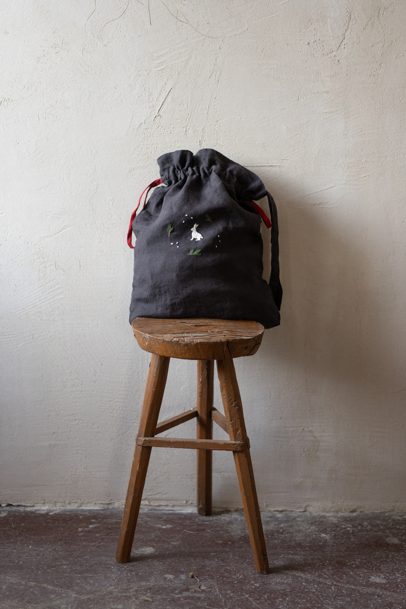 The large linen pouch bag is big enough to hold your little one’s clothes or favorite toys. Combine with our other products: bonnets, teethers, or rompers, for a perfect baby, welcome home gift!In the pictures: