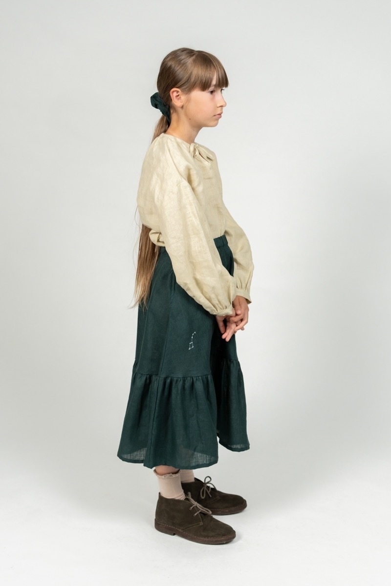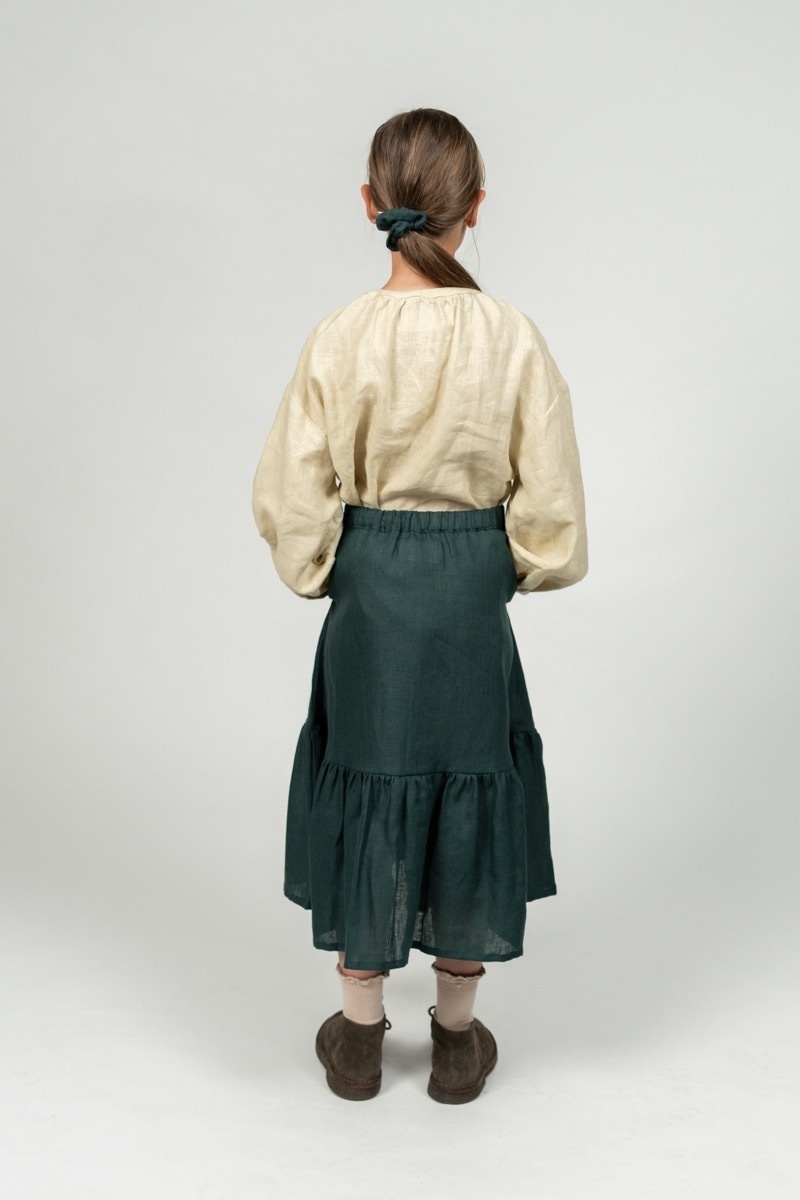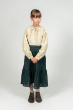 Long skirt Amie with a well-fitting yet comfortable, partially elastic waist. A wide range of colors and a lovely ruffle detail at the bottom makes the skirt feel as if it was picked straight from the flower garden just for your little one.In the pictures: