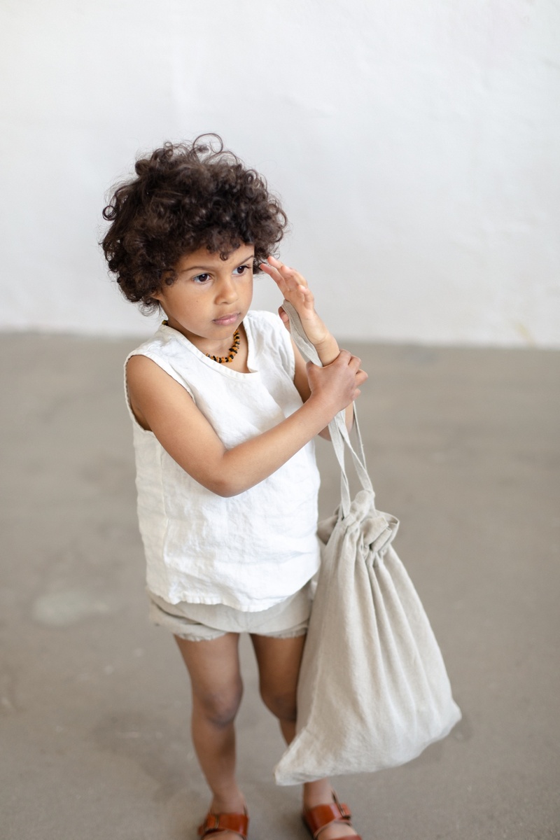 The large linen pouch bag is big enough to hold your little one’s clothes or favorite toys. Combine with our other products: bonnets, teethers, or rompers, for a perfect baby, welcome home gift!In the pictures: