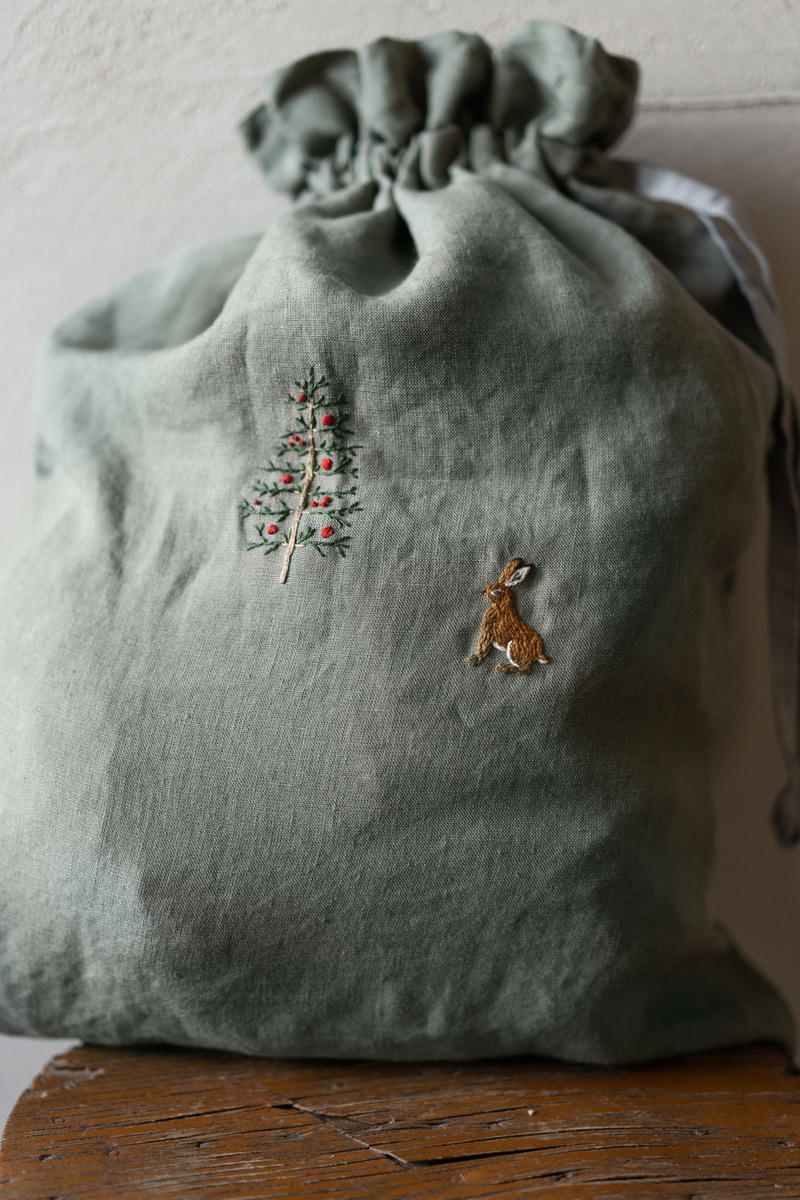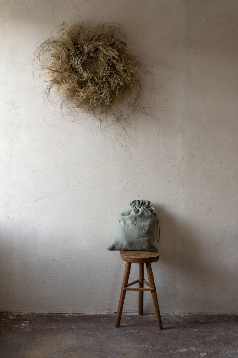 The large linen pouch bag is big enough to hold your little one’s clothes or favorite toys. Combine with our other products: bonnets, teethers, or rompers, for a perfect baby, welcome home gift!In the pictures: