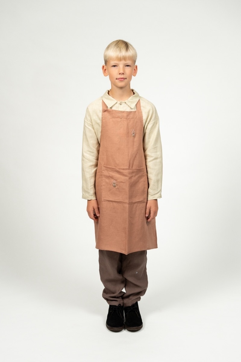 The traditional apron is ideal for playing outside in the garden or helping out in the kitchen. Made out of natural linen, it is pleasant to wear and keeps your little ones’ clothes clean for years to come.