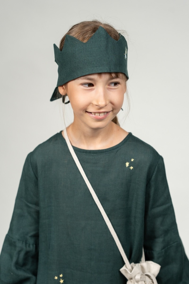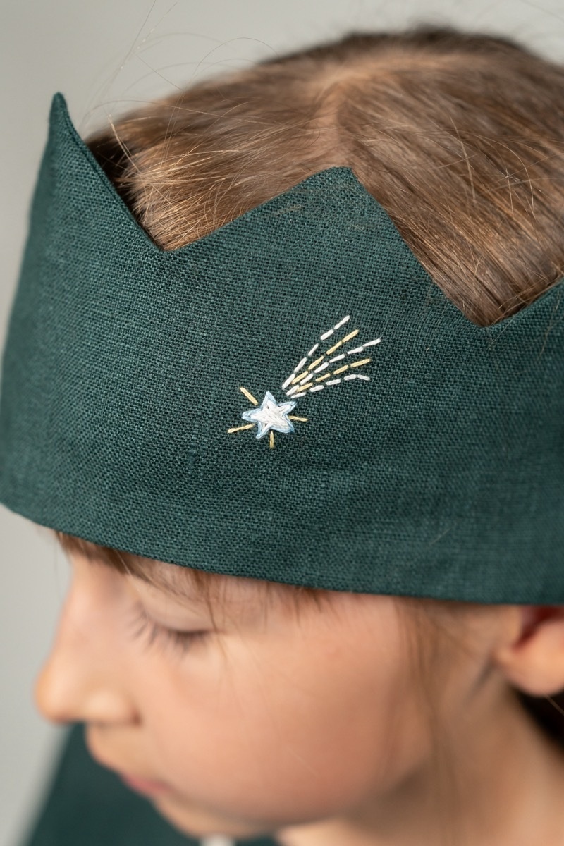 Celebrate in style with our Linen Crown for Kids. Perfect for any festivity, this fun, soft and adjustable accessory will please any young royal.In the pictures: