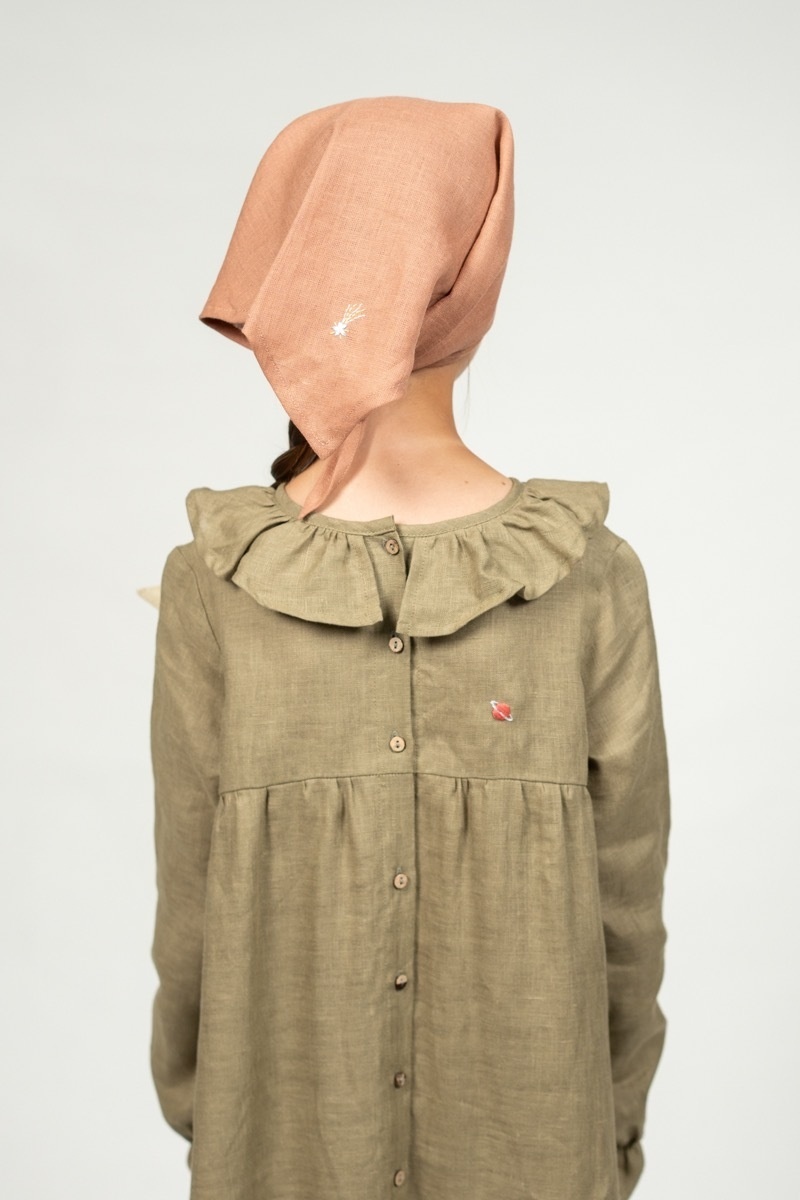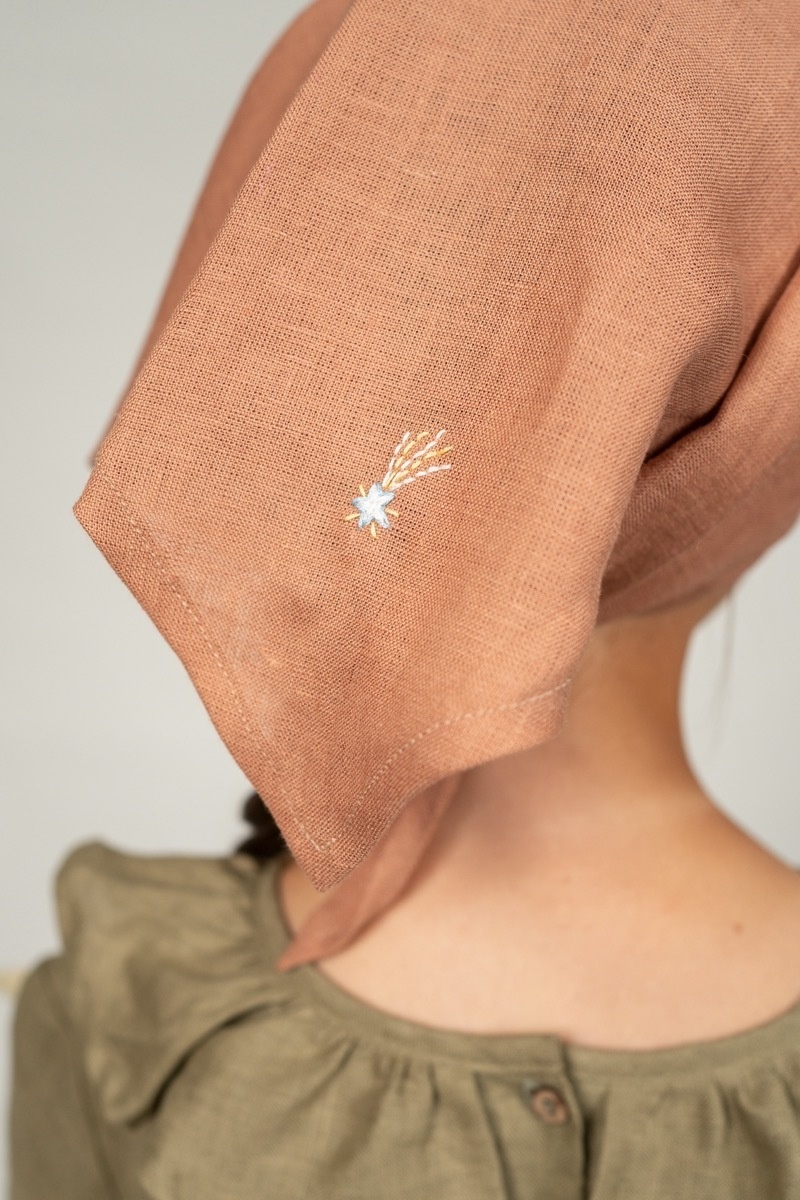 Ideal for exploring the outdoors during those hot summer and windy autumn days. This light kerchief is made from soft linen with possibility to be turned into a beautiful accessory anytime.In the pictures: