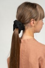 A classical and irreplaceable scrunchie filled with nostalgic memories of childhood. It is still as useful and fun as it was, offering an easy way to liven up a look.In the pictures: