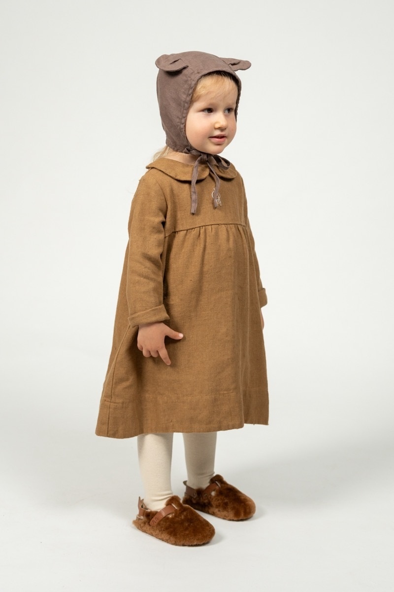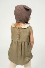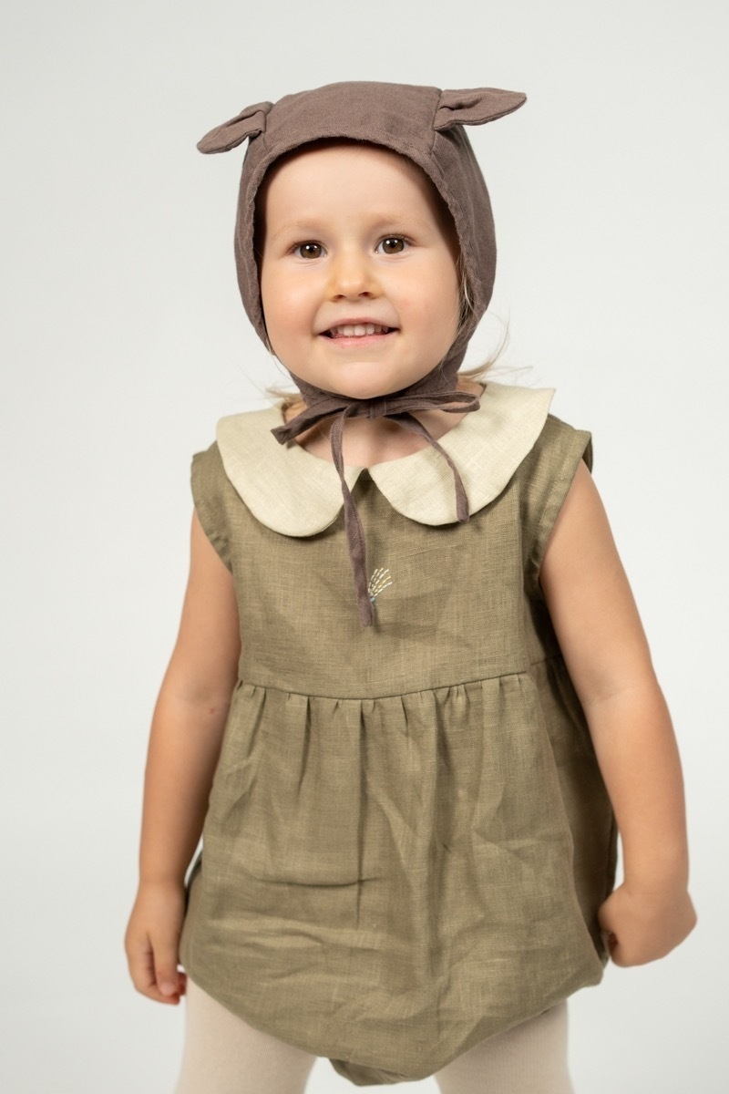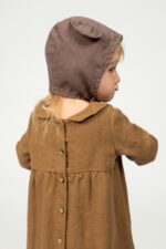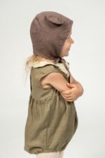 What could be more adorable than a baby in a bear bonnet? This two-layered bonnet made out of soft linen will not only protect from cool winds but is sure to make getting dressed so much more fun for your toddler and you!In the pictures: