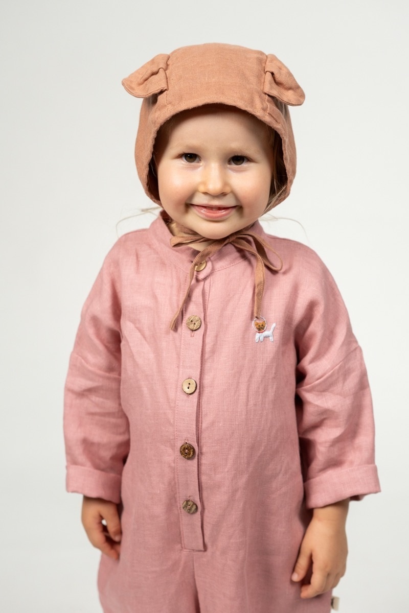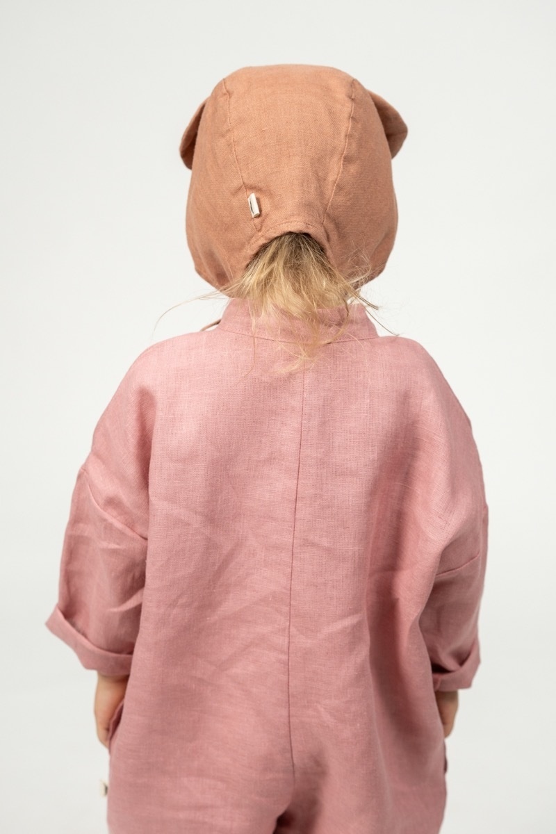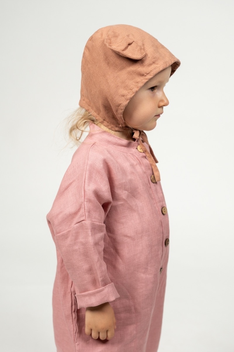 What could be more adorable than a baby in a bear bonnet? This two-layered bonnet made out of soft linen will not only protect from cool winds but is sure to make getting dressed so much more fun for your toddler and you!In the pictures: