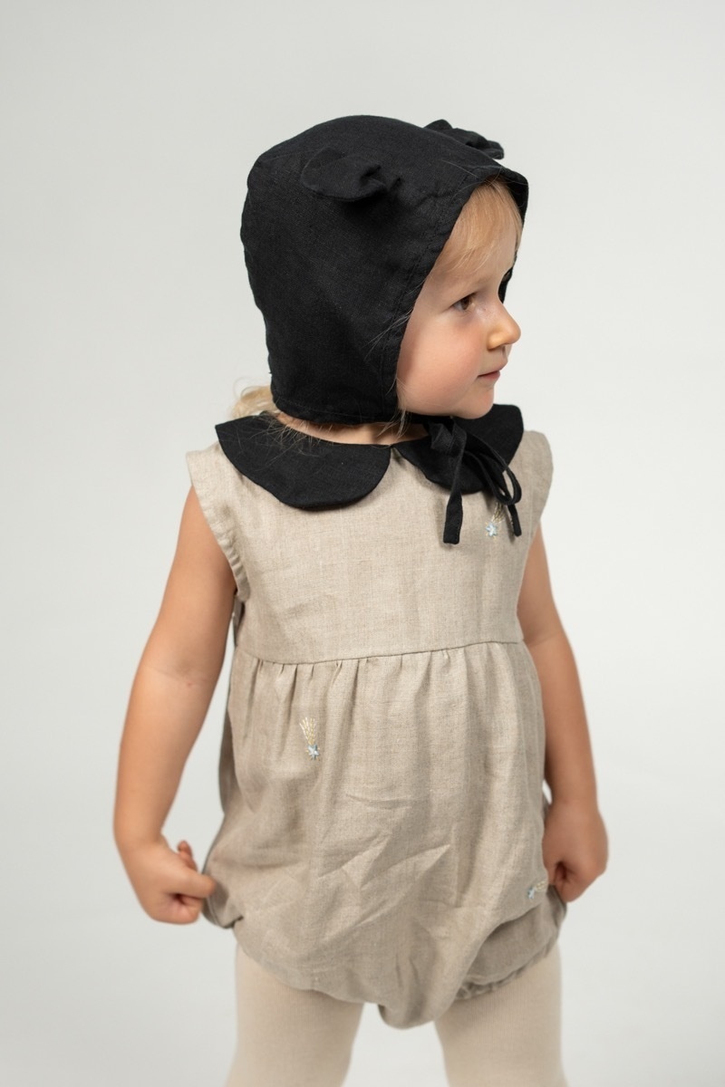 What could be more adorable than a baby in a fox bonnet? This two-layered bonnet made out of soft linen will not only protect from cool winds but is sure to make getting dressed so much more fun for your toddler and you!In the pictures: