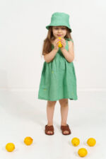 A charming linen dress with adjustable tie straps and delicate embroidery. Lightweight and breathable, perfect for warm-weather outings.In the pictures:
