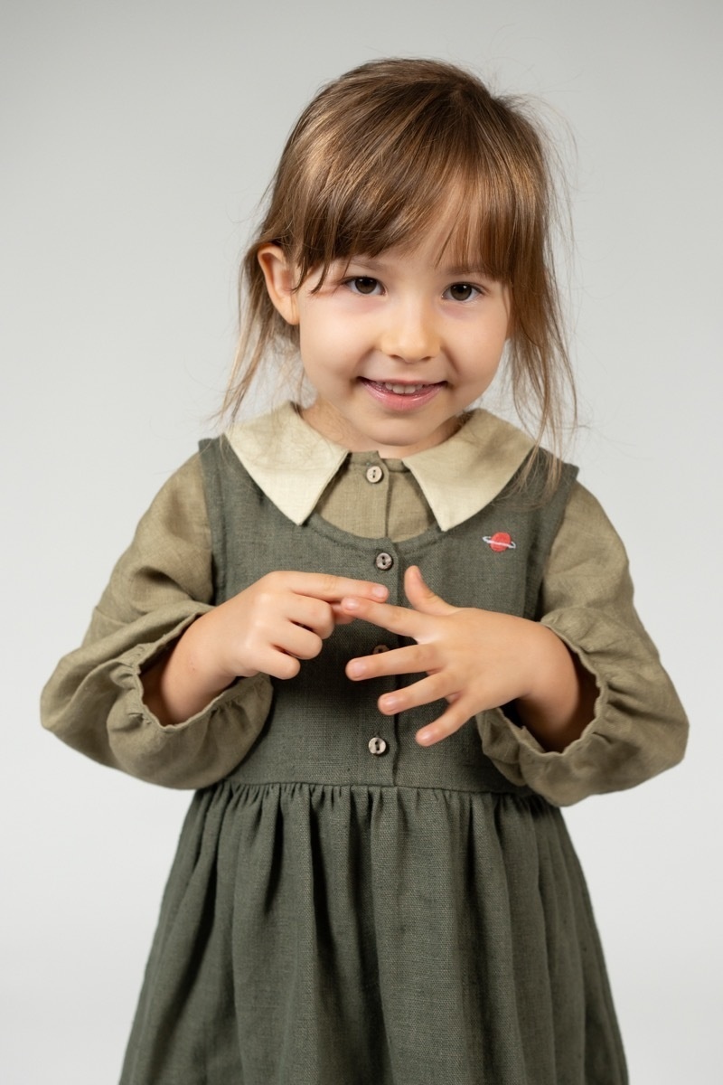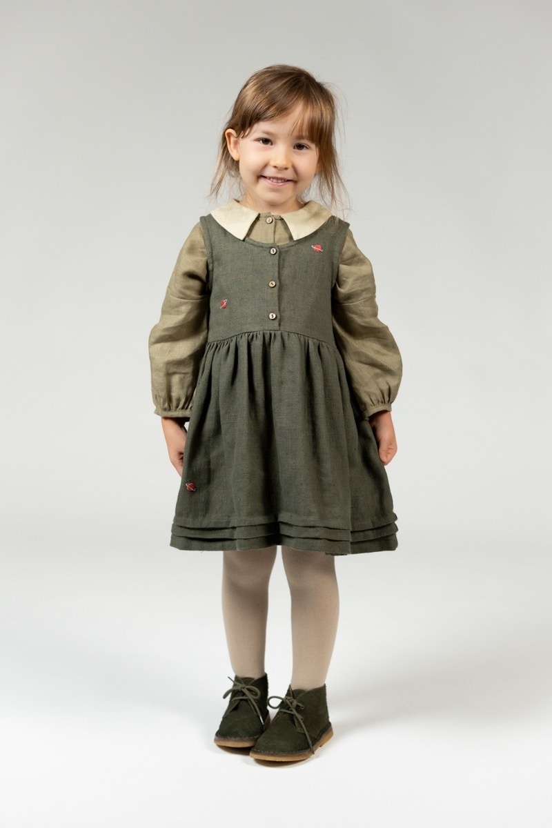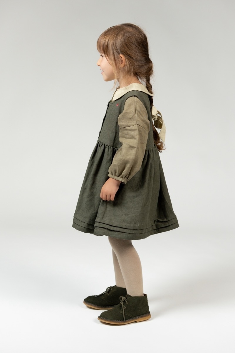 The Darcy dress is perfect for any age and occasion. The sleeveless design and soft 100% linen fabric make it ideal for autumn celebrations and layered up it will effortlessly transitions into a cozy winter outfit.