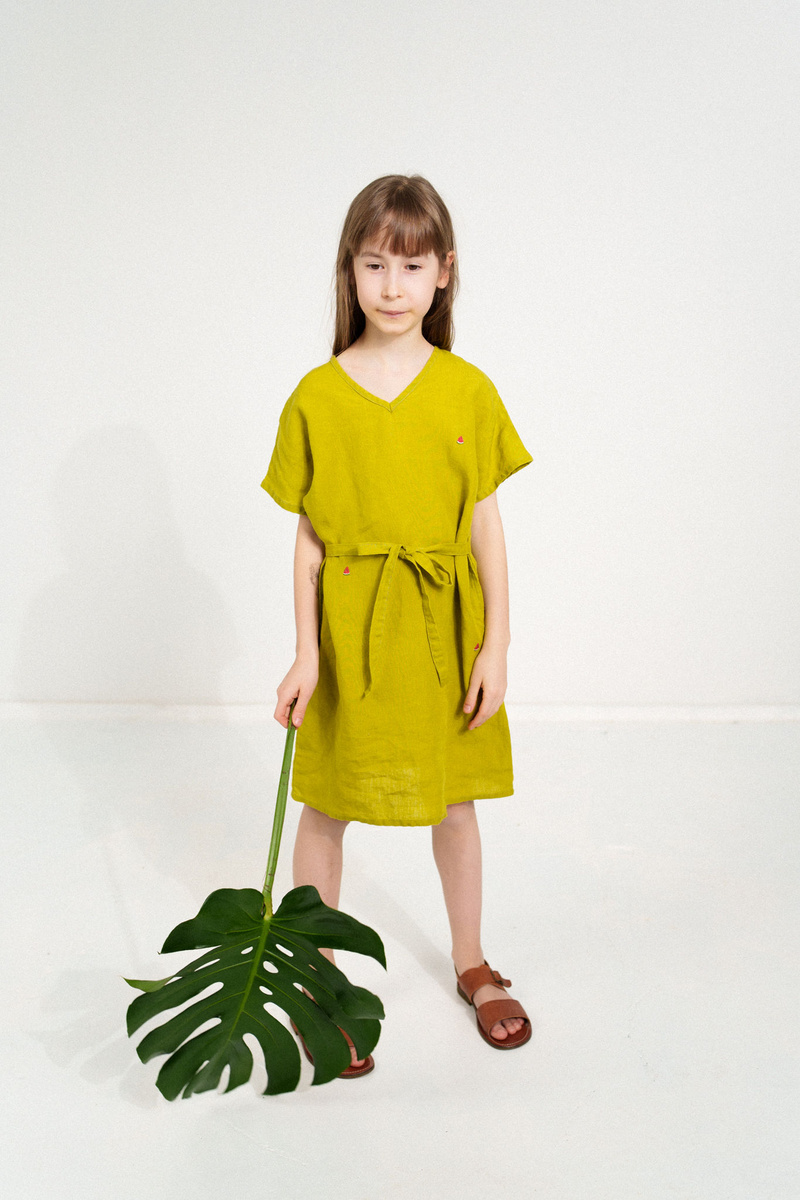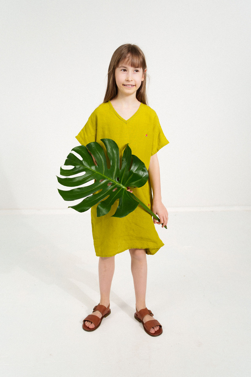 A beautifully crafted linen dress with puff sleeves and a flowy silhouette. Designed for comfort and effortless elegance.In the pictures: