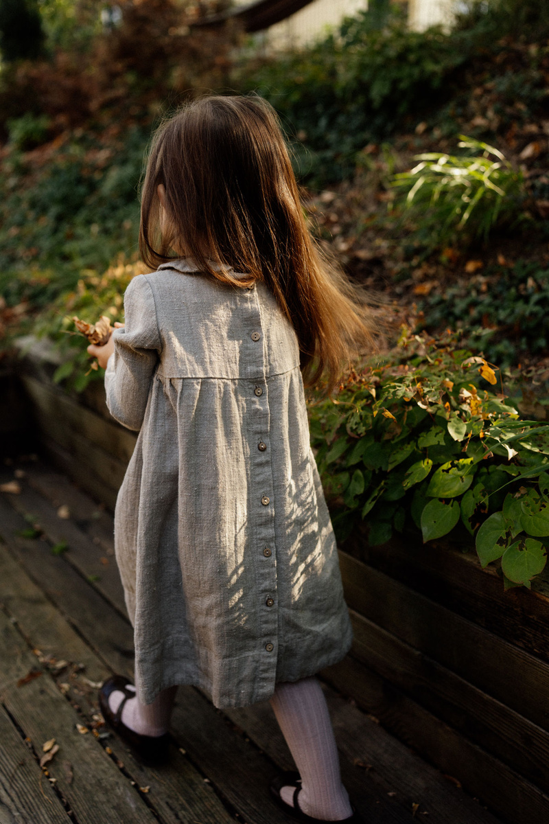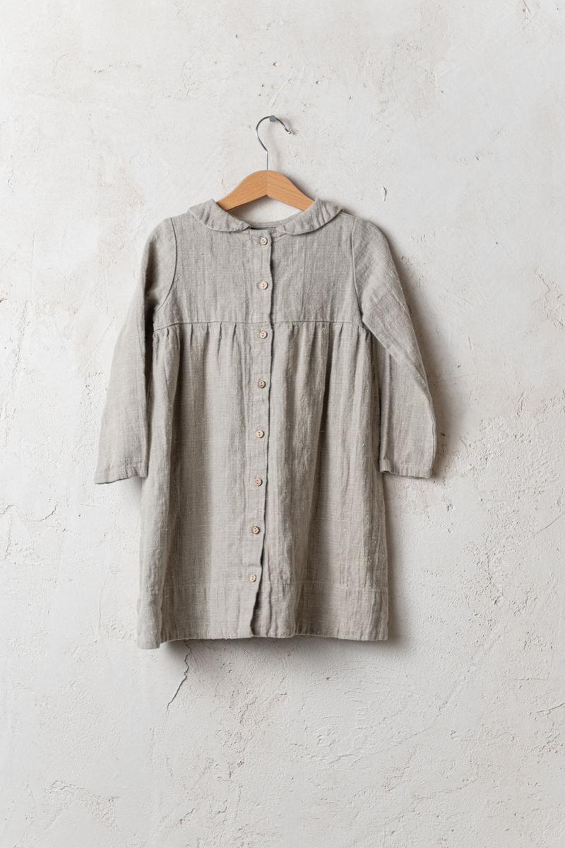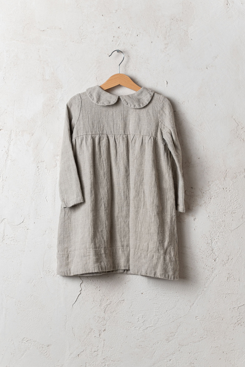 A classic collar dress. The loose silhouette and added Peter Pan collar make it a lovely girl dress.In the pictures: