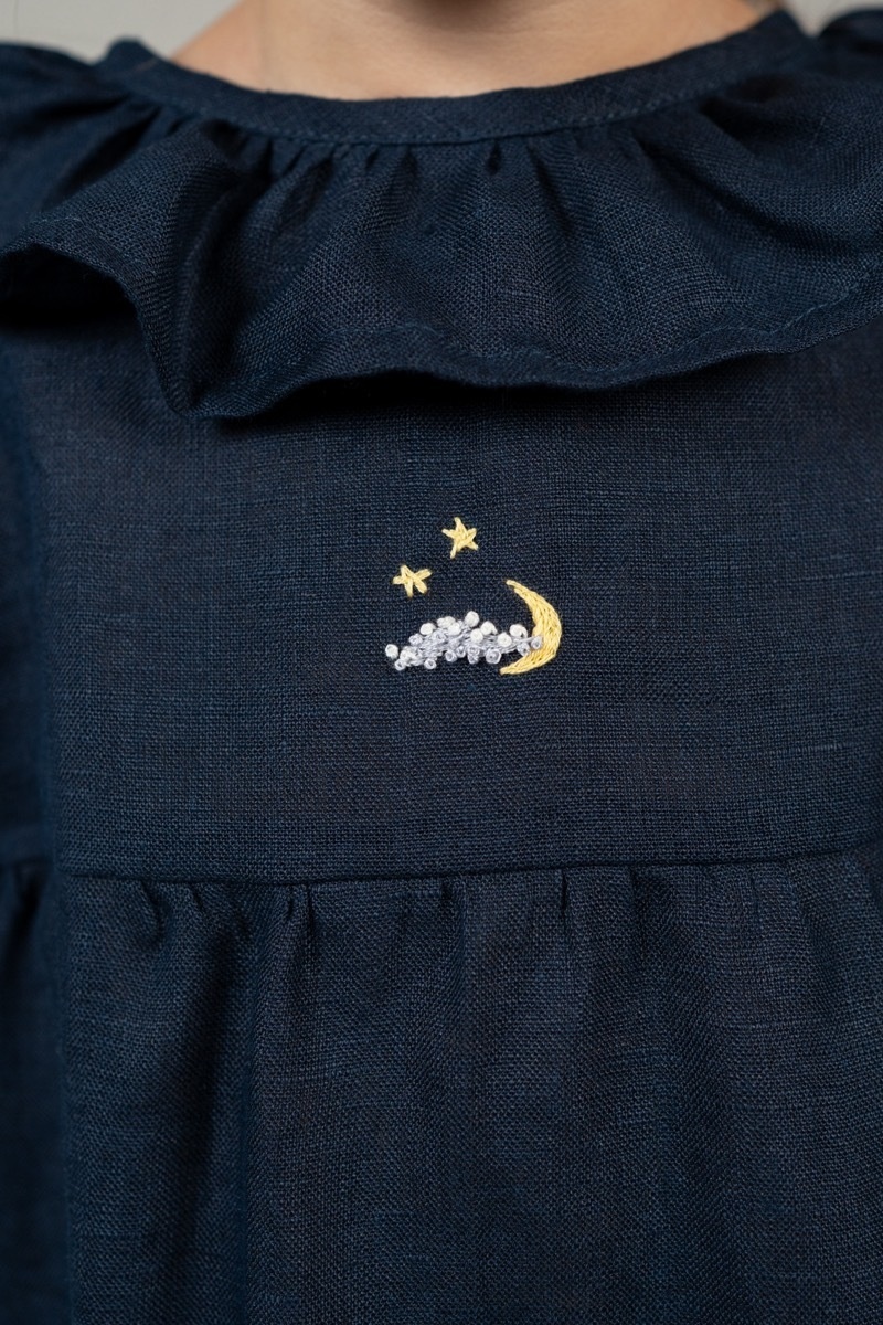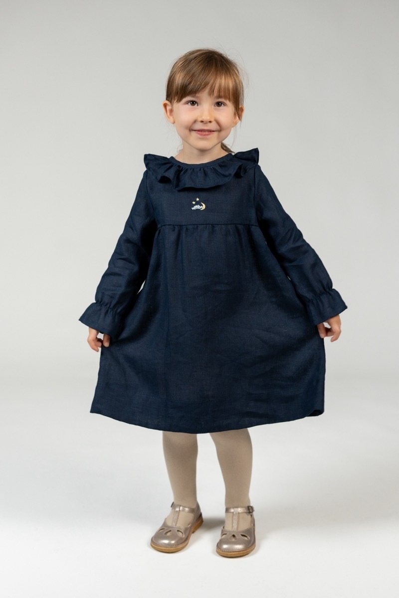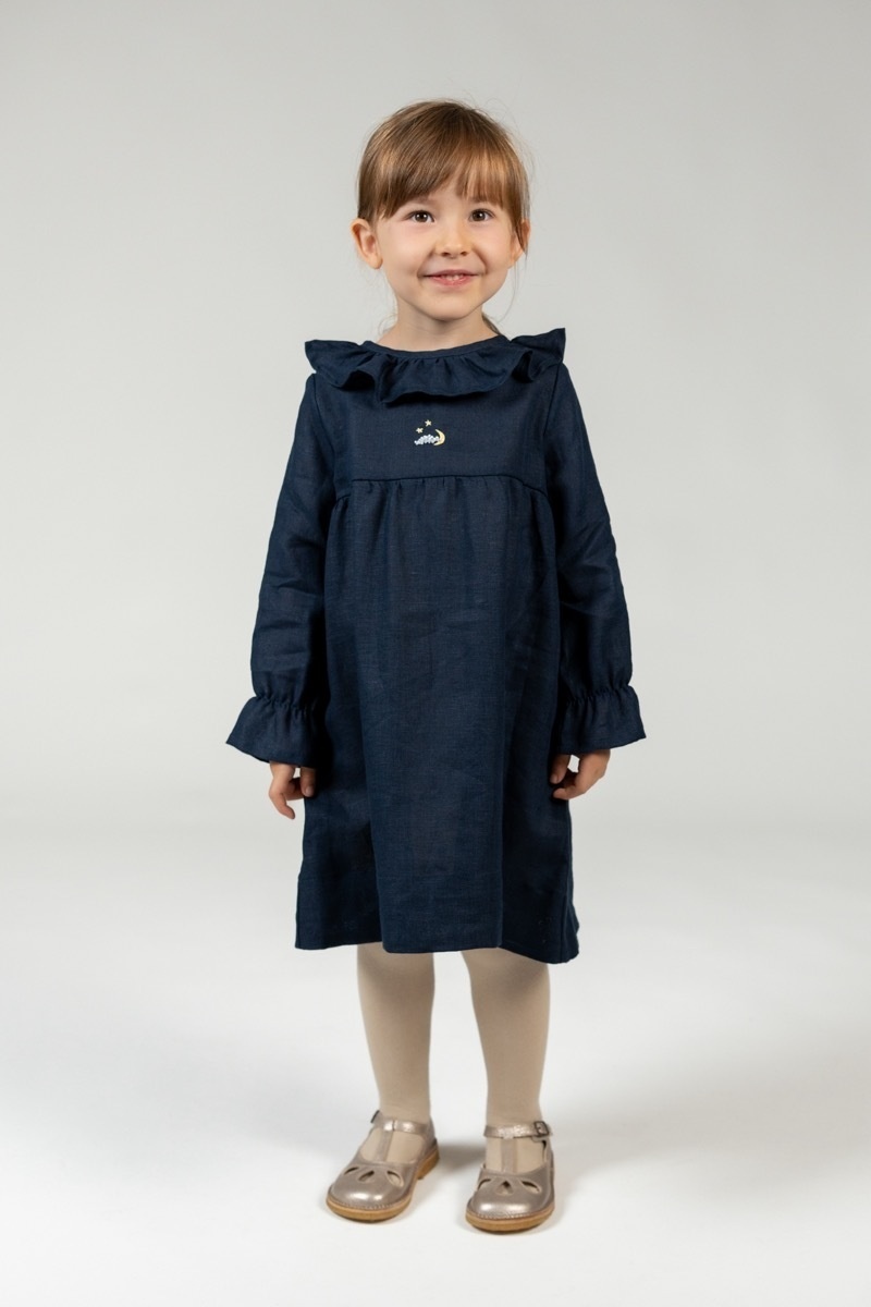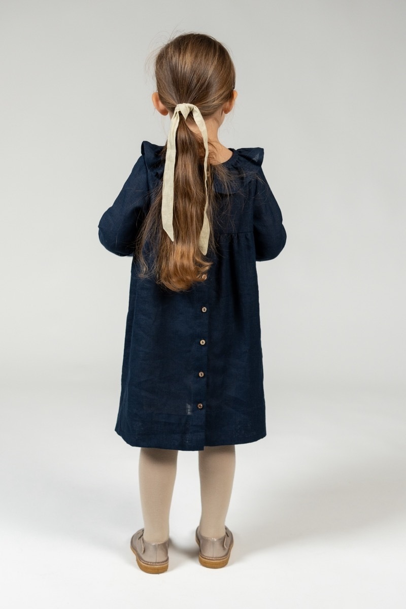 The ruffle collar makes the long-sleeved dress Ruby so playful and whimsical! Made out of medium-weight linen, this dress can become the one for any season.In the pictures: