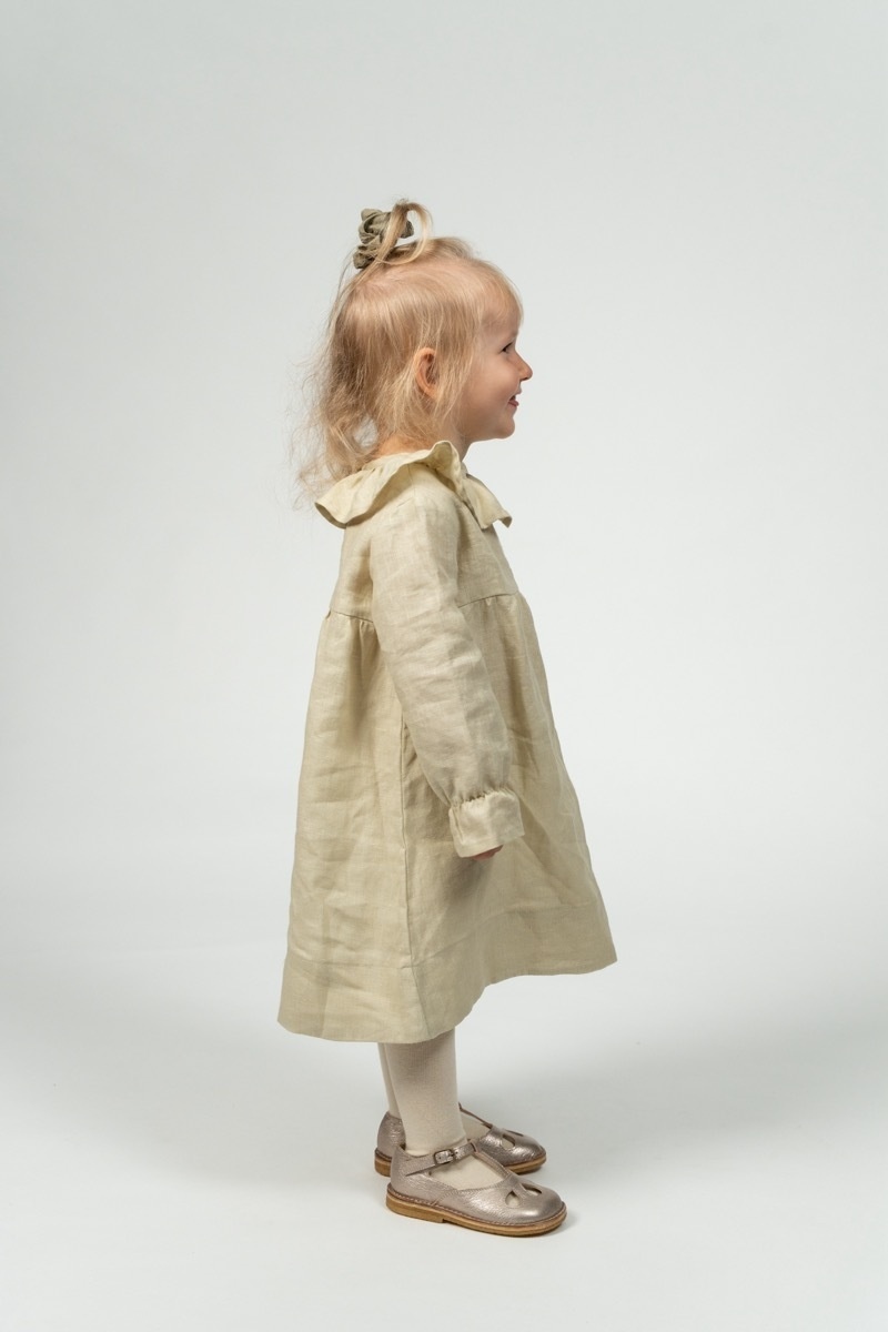 The ruffle collar makes the long-sleeved dress Ruby so playful and whimsical! Made out of medium-weight linen, this dress can become the one for any season.
