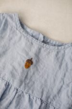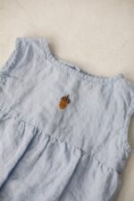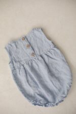 The sleeveless romper’s comfortable design, allowing for the freedom of movement, combined with the soft linen fabric, will satisfy any child. Whether on warm summer days or layered for cooler weather, it is a great choice all year round.In the pictures: