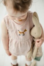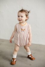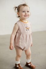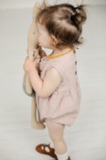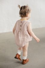 The sleeveless romper’s comfortable design, allowing for the freedom of movement, combined with the soft linen fabric, will satisfy any child. Whether on warm summer days or layered for cooler weather, it is a great choice all year round.In the pictures: