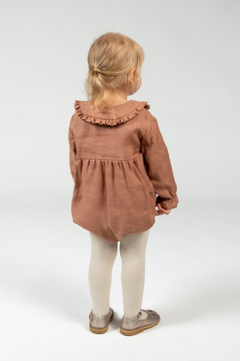 Made out of soft linen, this sleeveless onesie is gentle for your child’s skin and is designed for easy and comfortable wear. Baby Romper Elodie can be worn on its own or easily paired with any of our tops.