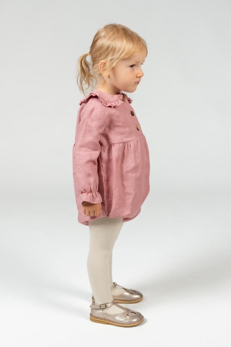 Made out of soft linen, this sleeveless onesie is gentle for your child’s skin and is designed for easy and comfortable wear. Baby Romper Elodie can be worn on its own or easily paired with any of our tops.In the pictures: