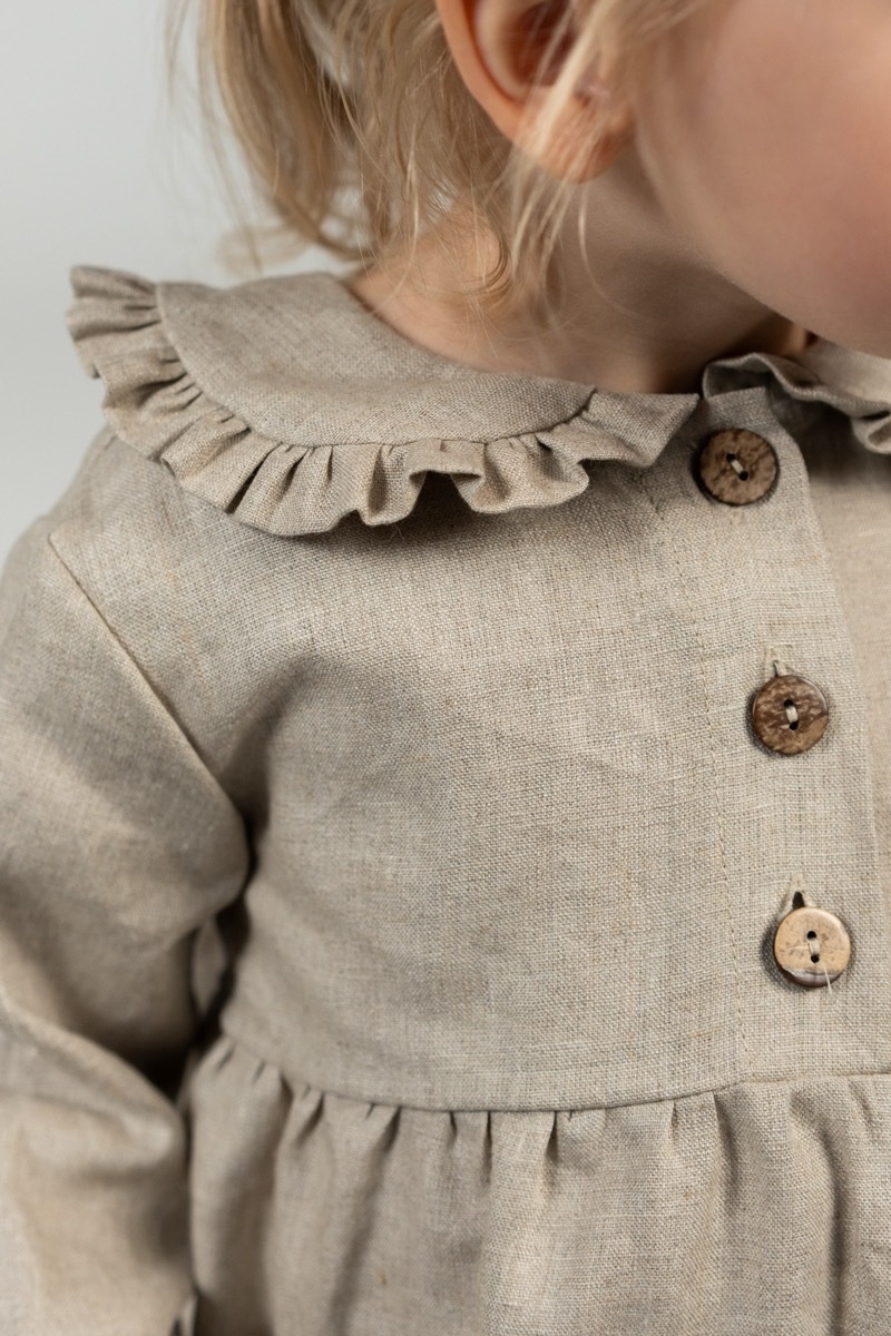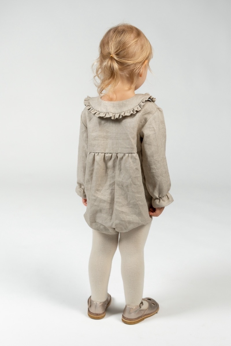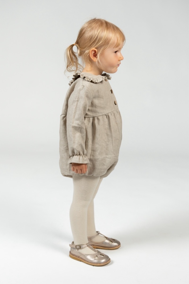 Made out of soft linen, this sleeveless onesie is gentle for your child’s skin and is designed for easy and comfortable wear. Baby Romper Elodie can be worn on its own or easily paired with any of our tops.In the pictures: