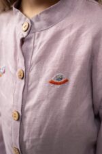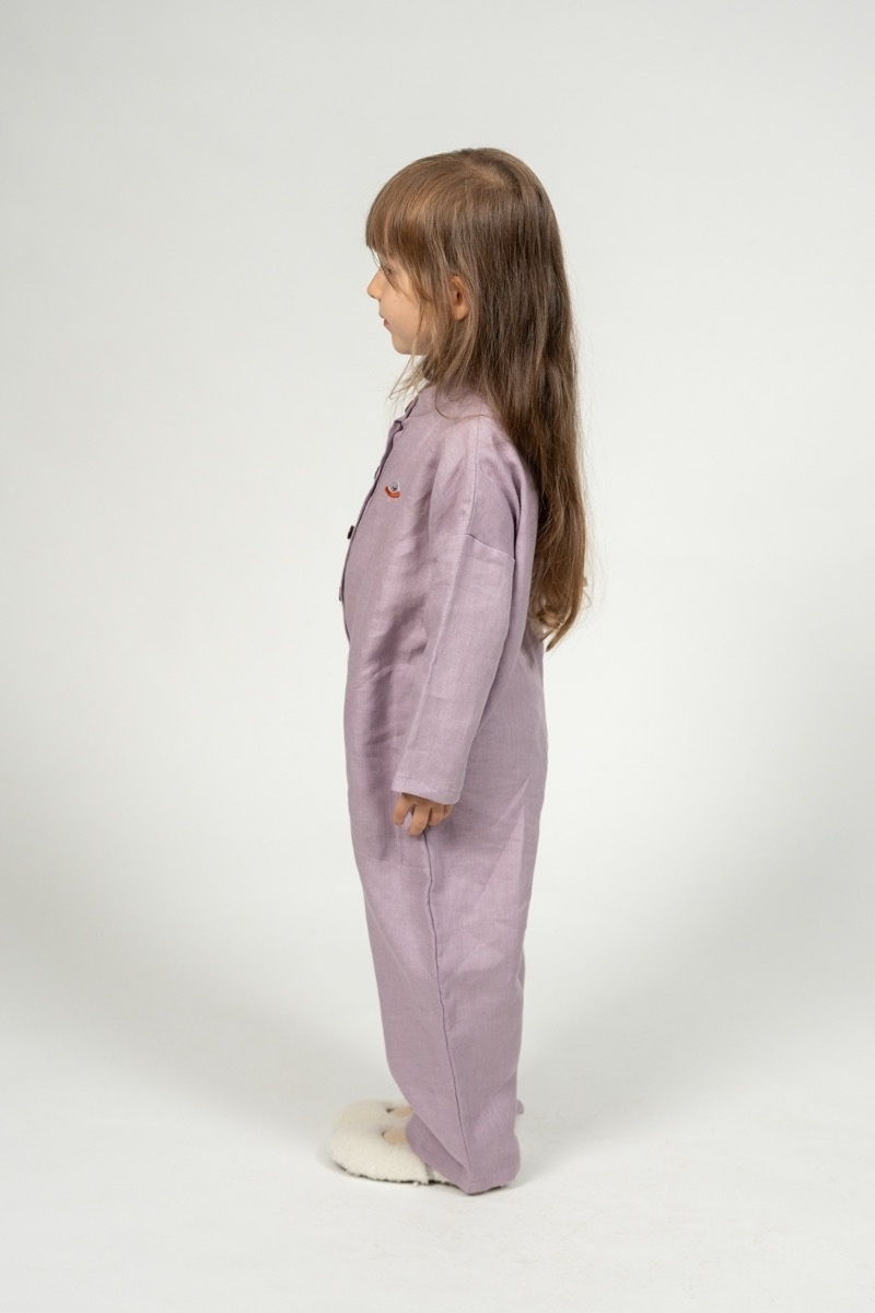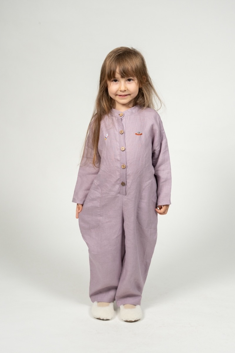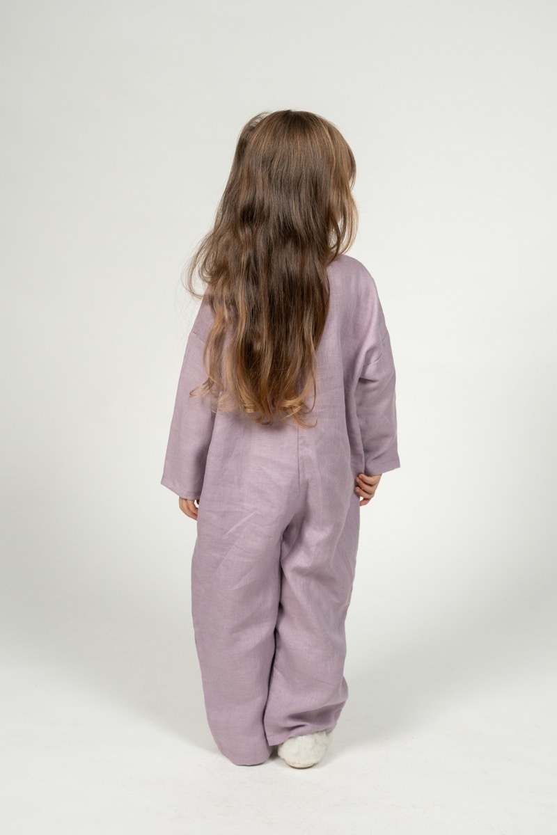 This linen jumpsuit for kids was created to ensure unlimited freedom of movement. Because of its light and roomy style, the onesie is ideal for playing inside or exploring the world.In the pictures: