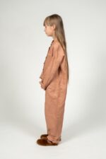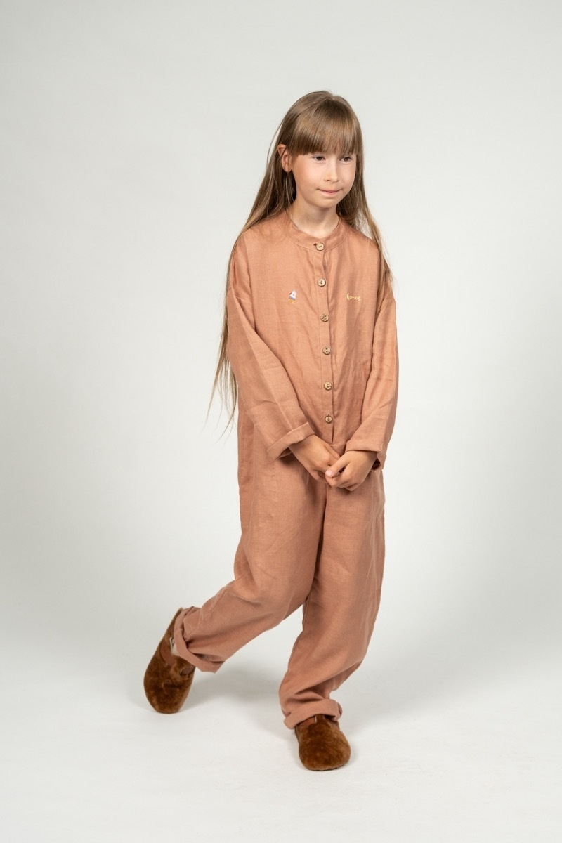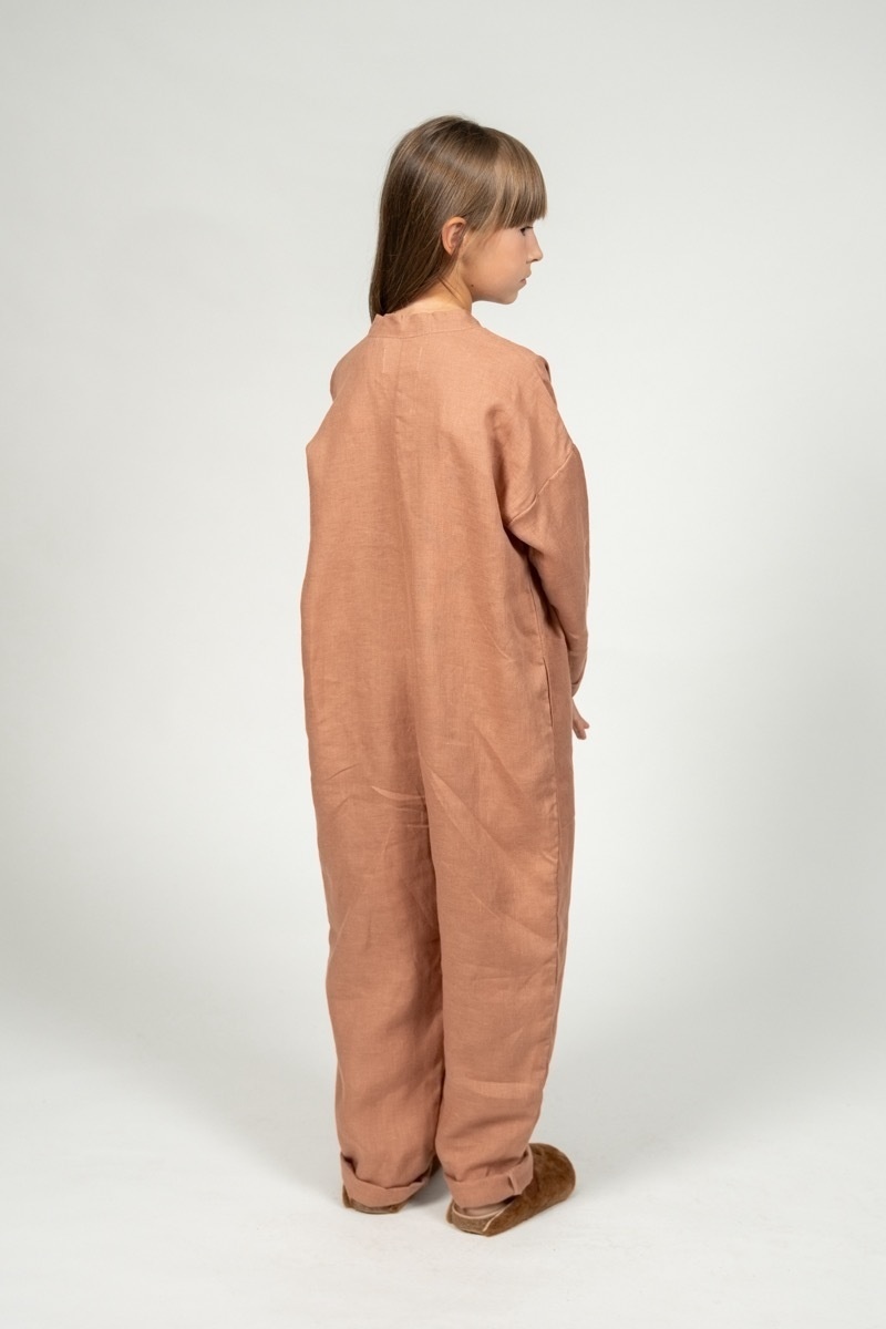 This linen jumpsuit for kids was created to ensure unlimited freedom of movement. Because of its light and roomy style, the onesie is ideal for playing inside or exploring the world.In the pictures: