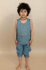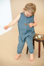 This linen jumpsuit for kids was created to ensure unlimited freedom of movement. With its wide choice of sizes, colors, hand-made embroideries, and a roomy and comfortable design, it is ideal for playing and exploring the world.