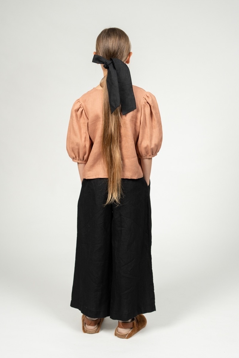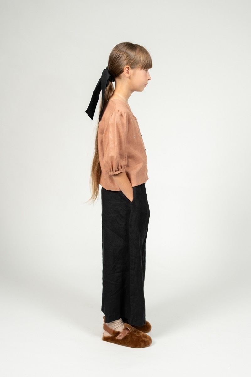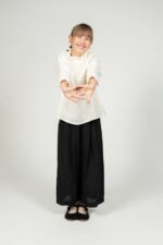 The pleated pants Amber are incredibly comfortable and stylish at the same time! Their loose and unisex style allows an easy match with our kid’s tops – no matter if it’s a shirt or a tunic.