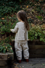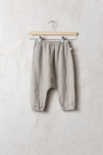 These linen harem trousers are the ultimate choice for comfort. A soft elastic waist and plenty of space for regular or cloth diapers make these pants ideal for your child’s everyday explorations.