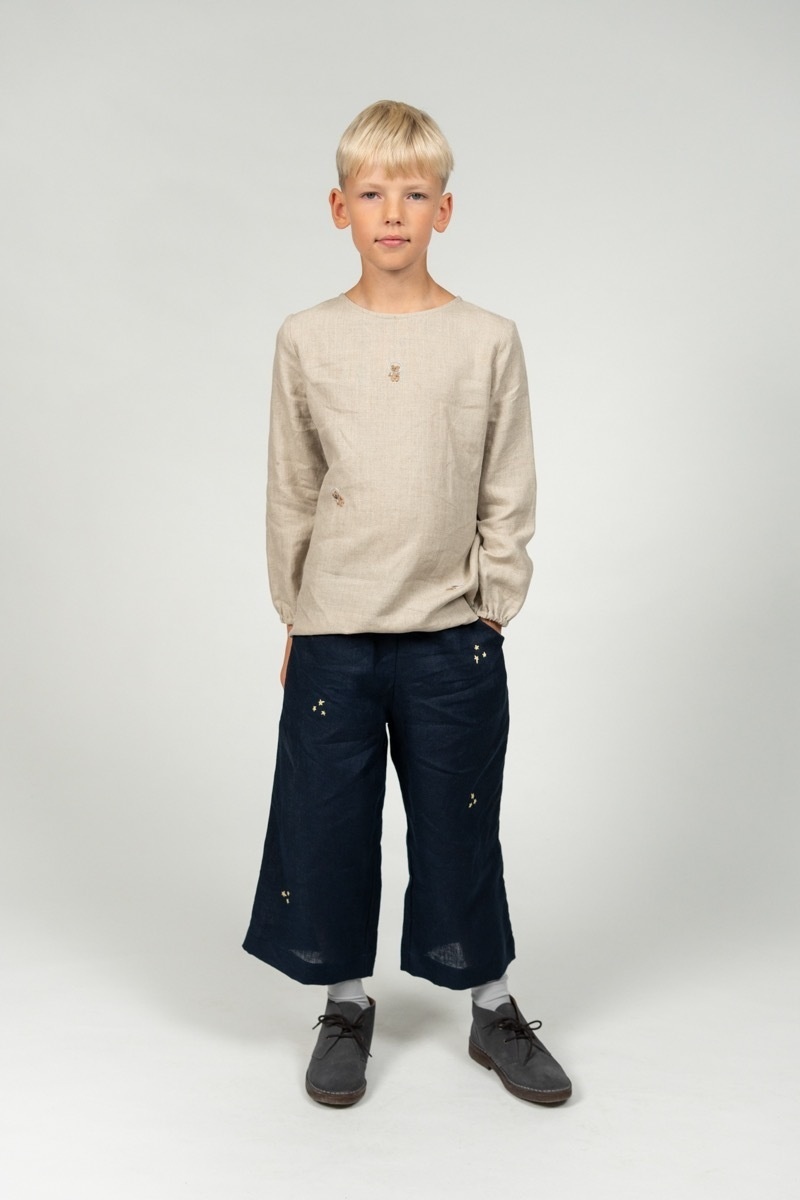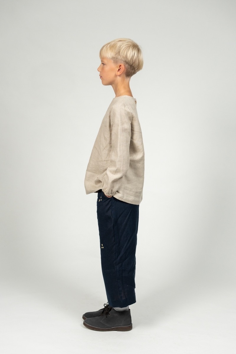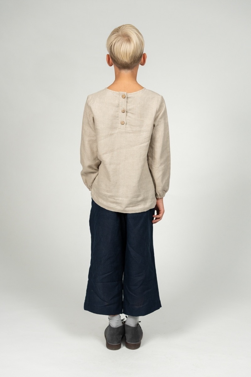 The wide Culotte Pants Hazel are a delight on warm days and perfect for layering for colder ones. The soft linen and roomy design make the trousers ideal for playing and exploring the world anytime.In the pictures:
