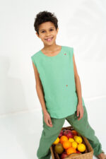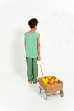 These linen unisex pants for kids with a gathered elastic waist and cuffed legs offer comfy fit with a touch of neat, tailored look on the straight pant leg. Crafted from soft, breathable linen, they provide ease of movement no matter the occasion.In the pictures: