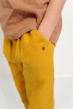 These linen unisex pants for kids with a gathered elastic waist and cuffed legs offer comfy fit with a touch of neat, tailored look on the straight pant leg. Crafted from soft, breathable linen, they provide ease of movement no matter the occasion.In the pictures: