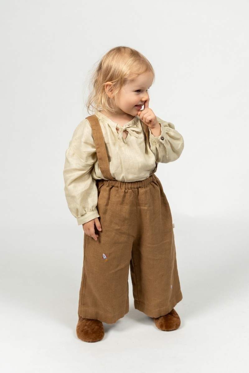 Unisex Warm Culotte Pants Leonie are created to ensure unlimited freedom of movement. With a light, airy design and added dashing suspenders, these pants are ideal for playing at home or for adventures outside. Removable suspenders add an extra dash of style and can adjust to your little one’s height, growing together with them.