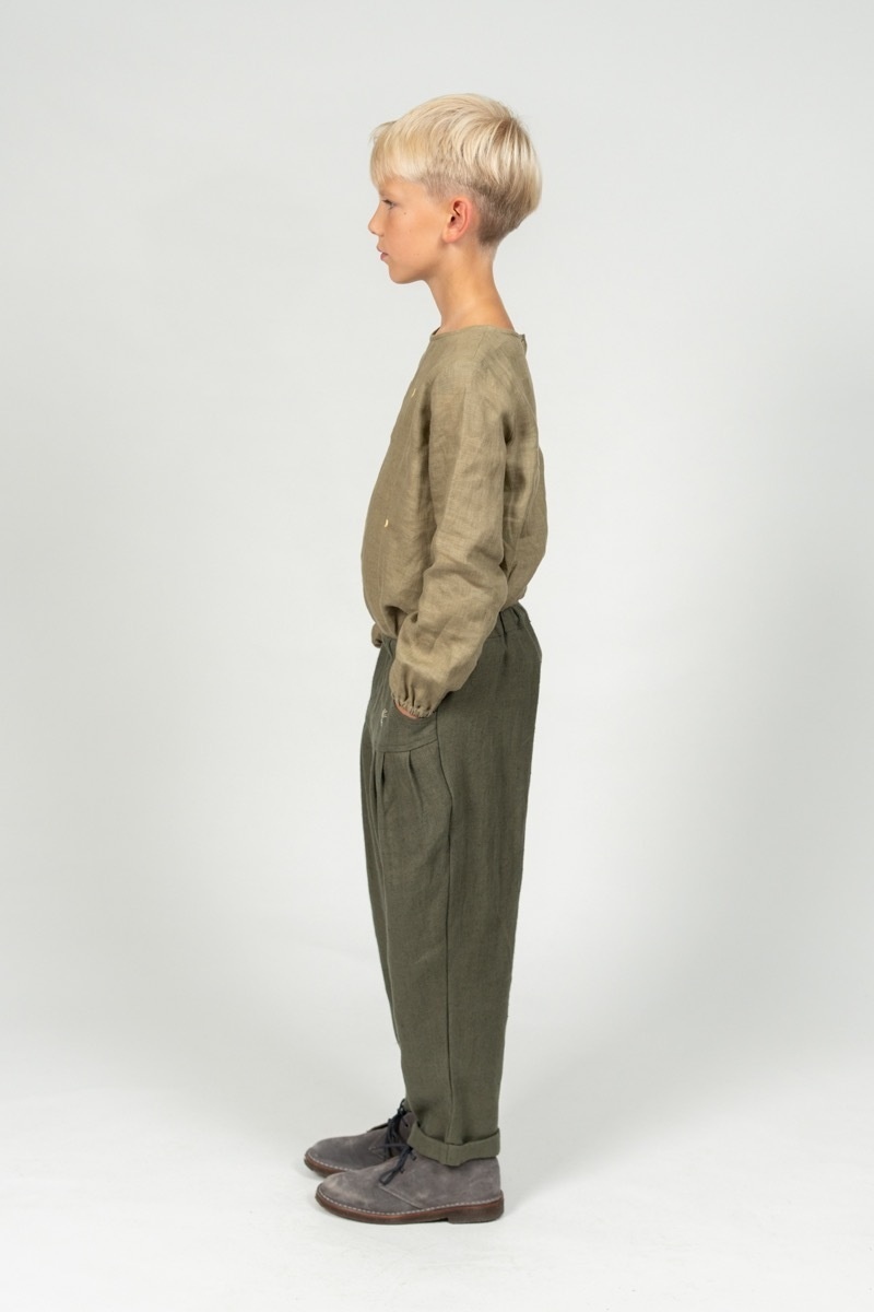 Whether for playtime adventures or casual outings, Loose Linen Pants Tilda are a great choice for any season. Crafted from soft heavyweight fabric, these pants offer a roomy fit that allows unrestricted movement and embraces the essence of unique design.In the pictures: