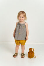 These linen shorts are guaranteed to bring a smile to any girl’s face. The ruffled waist and hems added pockets make these shorts a delightful addition to your little one’s summer adventures.