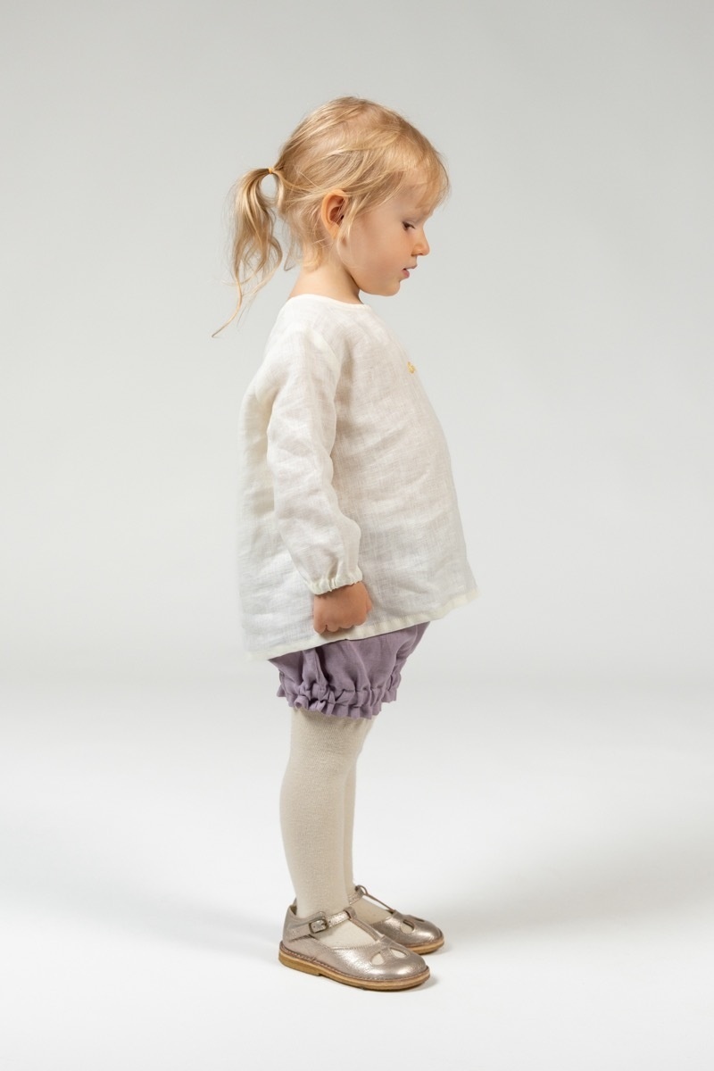 These linen shorts are guaranteed to bring a smile to any girl’s face. The ruffled waist and hems added pockets make these shorts a delightful addition to your little one’s summer adventures.
