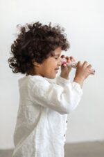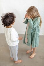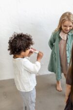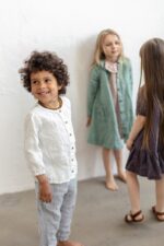 A simple yet indispensable shirt for cooler days. Easily combined with skirts or pants, this shirt has a closure at the front, making it much more convenient for your little one.