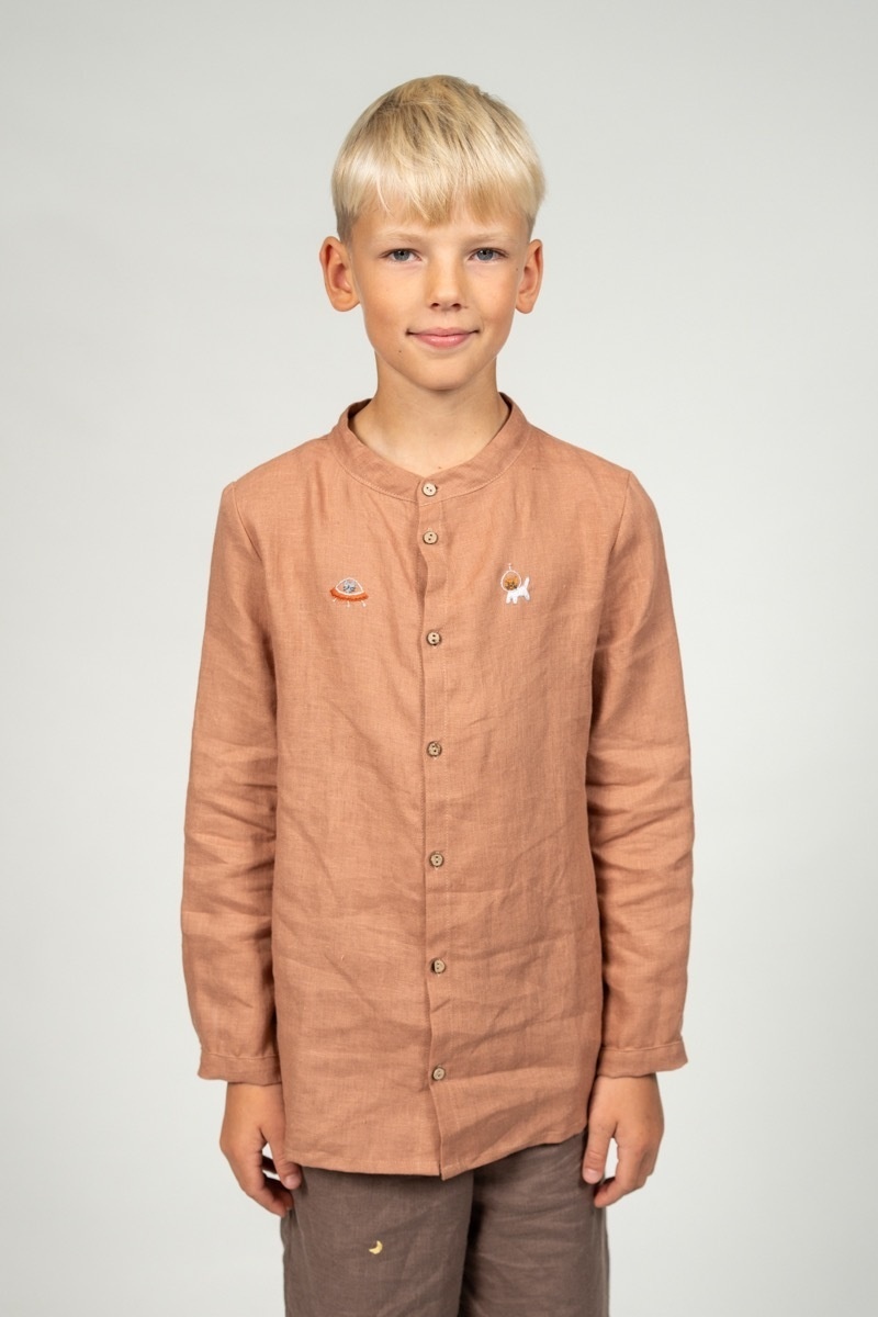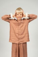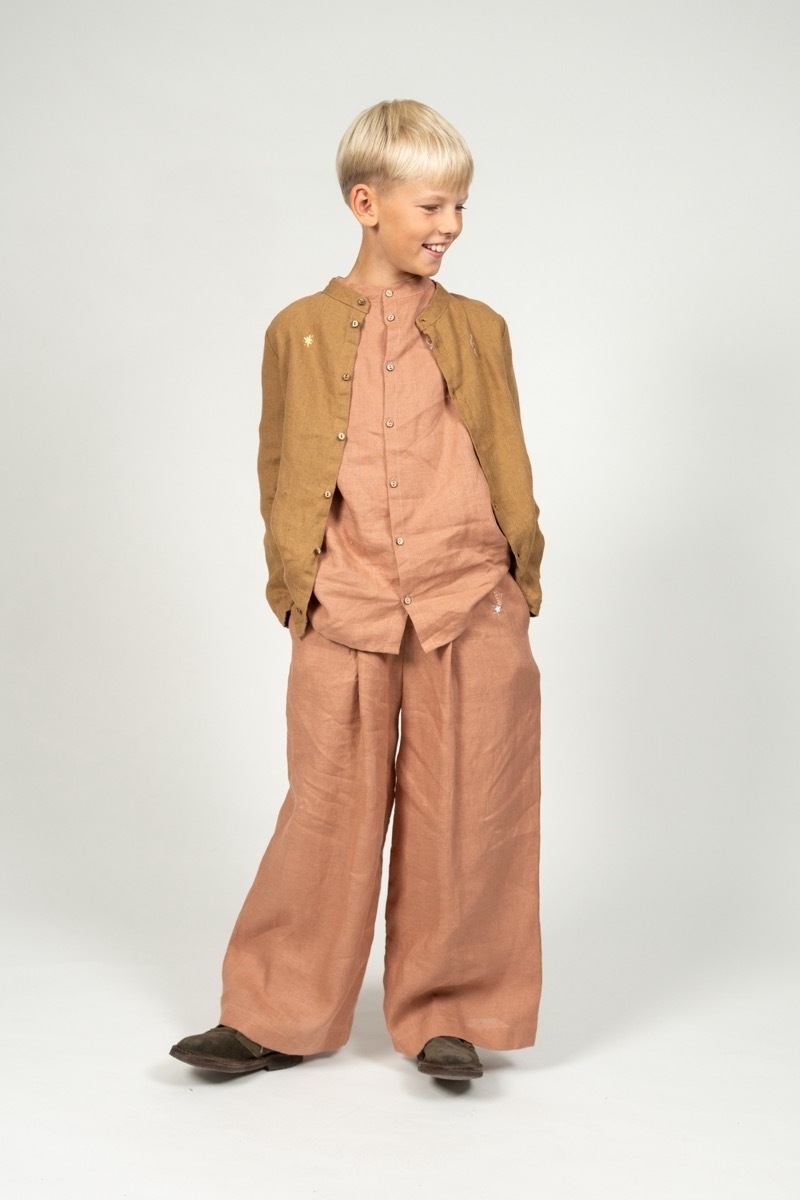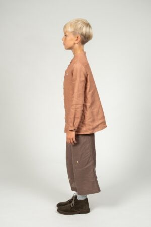 The Hubert shirt is a true classic. Easily styled, comfy, and versatile, it is suitable for playing ‘hide and seek’ in the woods or those summer birthday picnics near a local pond.In the pictures: