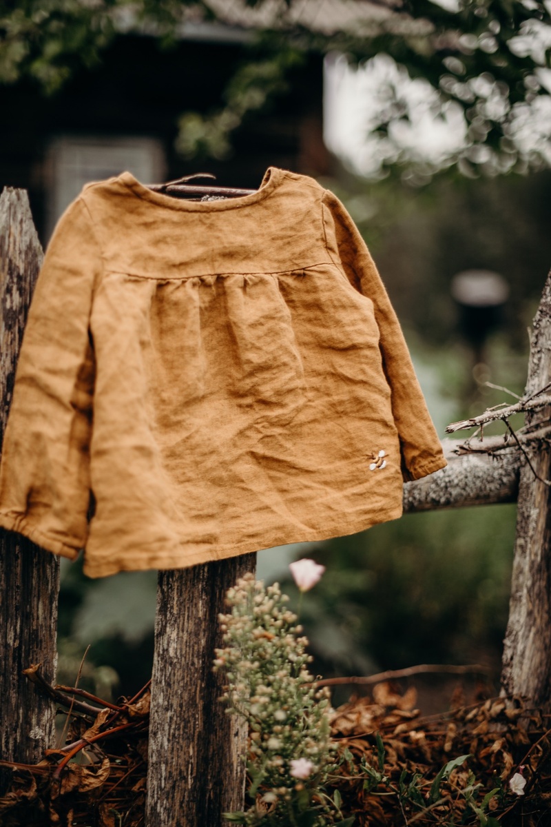 A lovely blouse with yoke detail – a daily choice with a dash of charm. We added coconut buttons on the back for an easy and comfortable change.In the pictures: