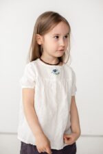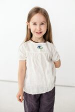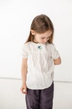 A lovely blouse with yoke detail – a daily choice with a dash of charm. We added coconut buttons on the back for an easy and comfortable change.In the pictures: