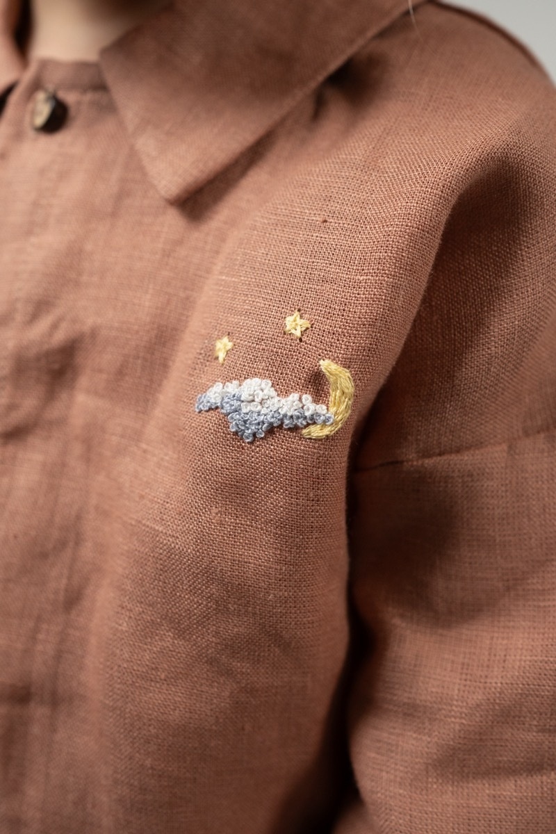Each piece is made to order. Preparation time is usually 1–2 weeks, up to 3 weeks for embroidered items.