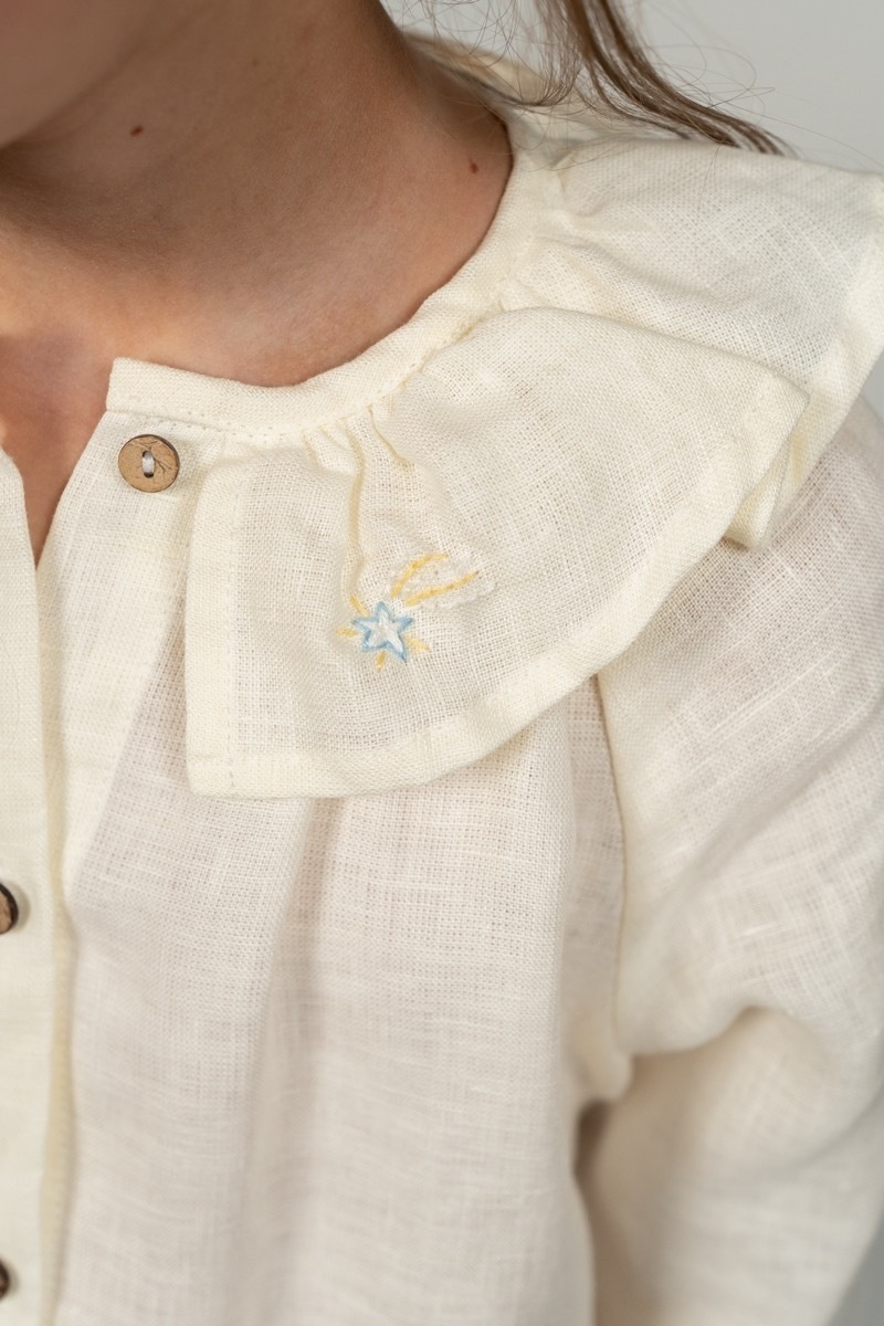 A dreamy and flowy collared linen blouse for girls. This tunic is perfect for a special occasion or an afternoon spent exploring the outdoors.