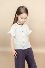 The Poppy shirt will entice every girl. Embellished with lovely ruffles on the sleeve cuffs, the top can easily match any skirt or pants and create more fun and girly look in a second.