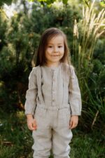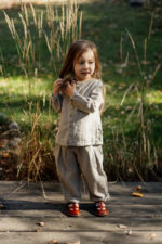 A simple yet indispensable shirt for cooler days. Easily combined with skirts or pants, this shirt has a closure at the front, making it much more convenient for your little one.In the pictures: