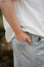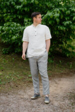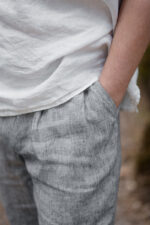 The ultimate summer choice – Pleated Pants Edward, crafted from soft linen. With a relaxed fit, partially elastic waist, and tapered leg design, these pants provide utmost comfort while maintaining a timeless silhouette.