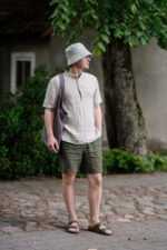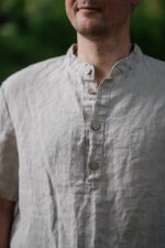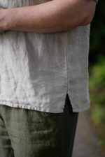 Enhance your summer wardrobe with Linen Shirt Nolan with Short Sleeves. Its classy yet comfortable design features a side split and band collar, setting it apart from traditional shirtsIn the pictures: