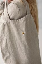 This big linen tote bag is perfect for shopping, everyday use, or laundry. Carry it over your shoulder or in your hand and enjoy this durable tote with a beautiful handmade embroidery selected by you.