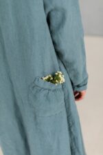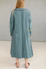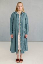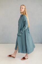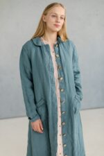 This linen coat is inspired by our kids’ coat offers the same romantic look. A-line design and relaxed fit will suit all types of figures, and the heavy-weight linen will keep you warm even on cooler days.In the pictures: