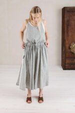 The pinafore dress Celia is a unique adventure. Worn as a top layer piece, dress Celia can be easily combined with other flowy dresses, loose shirts, and long pants.