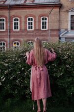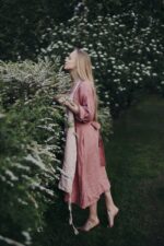 Designed with a modern fluid life in mind, this one-size dress is a true catch! Roomy cut, styled with a long linen belt (or without), looks great on any body shape. Combined with the possibility to wear the item buttons on the front or the back, the brilliant design allows you to discover this dress every day anew.In the pictures: